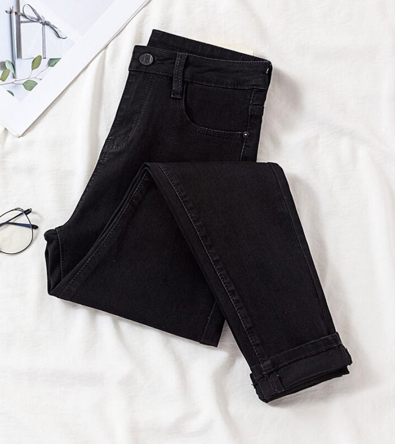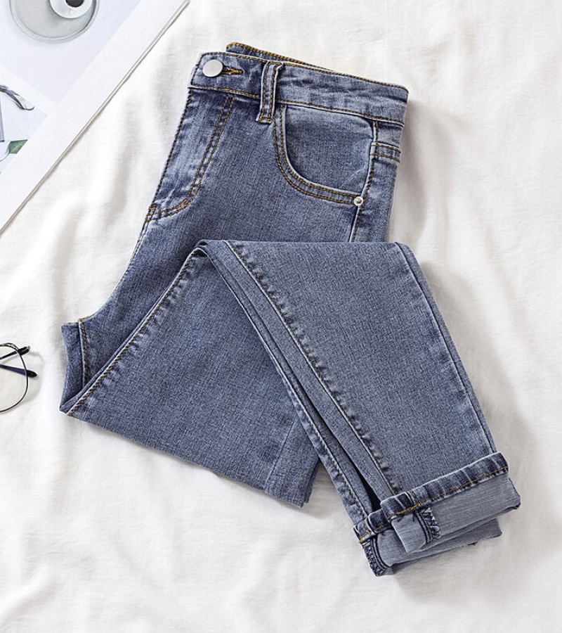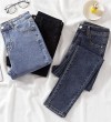 牛仔裤韩国女式高腰全配修身L弹力新镶边铅笔女式牛仔裤潮流