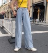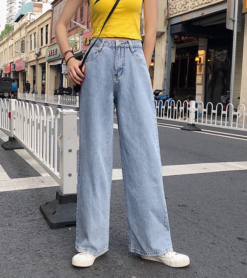 2022年秋季高腰牛仔裤女式大码宽松阔腿长裤,适合丰满女孩,修身垂坠拖把直筒裤