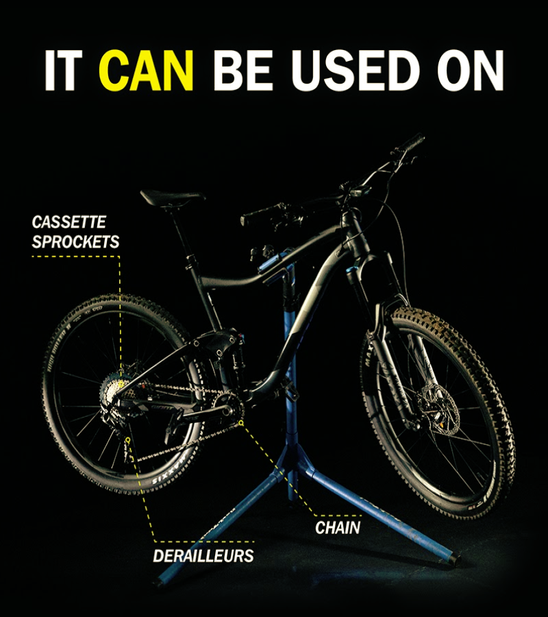 - Recommended to use on chains, derailleurs and sprockets.