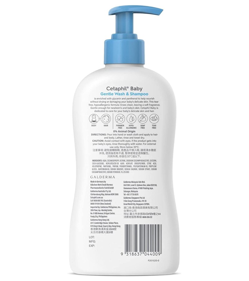 Cetaphil Baby Gentle Wash & Shampoo is dermatologically tested, tear & soap free, pH balanced and hypoallergenic for hair & body.
