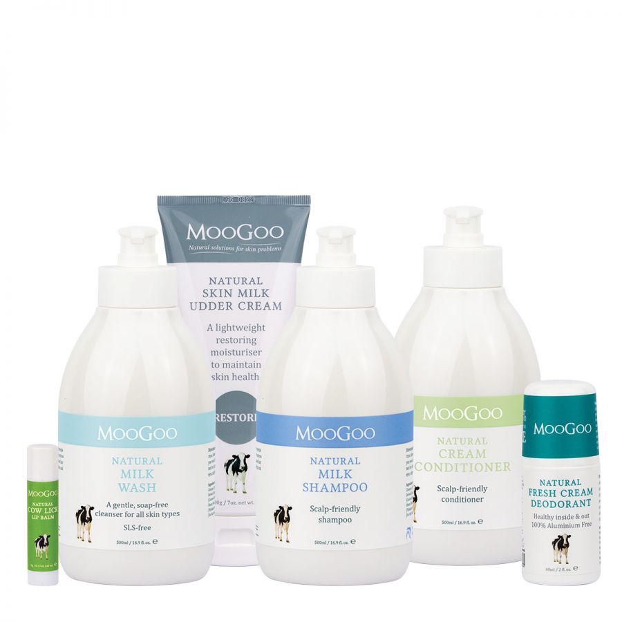 MooGoo Natural Milk Wash is a face wash formulation packaged into a larger bottle so that it can also be used on the body. We use 5 very mild natural cleansers as a blend is more gentle than one.