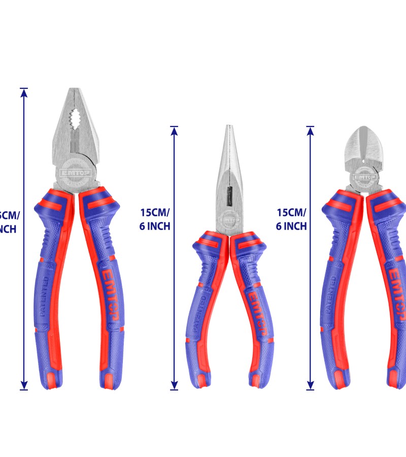 EMTOP 3PCS钳子套装,8英寸组合钳子,6英寸长鼻钳,6英寸对角线切割钳多功能钢丝钳EPLS0311