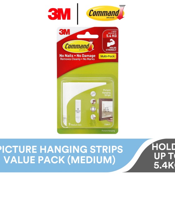 3M Command白色中号挂画条超值包装,17204VP,9/包,最多可容纳5.4公斤,18x24英寸框架,框架,装饰,艺术品