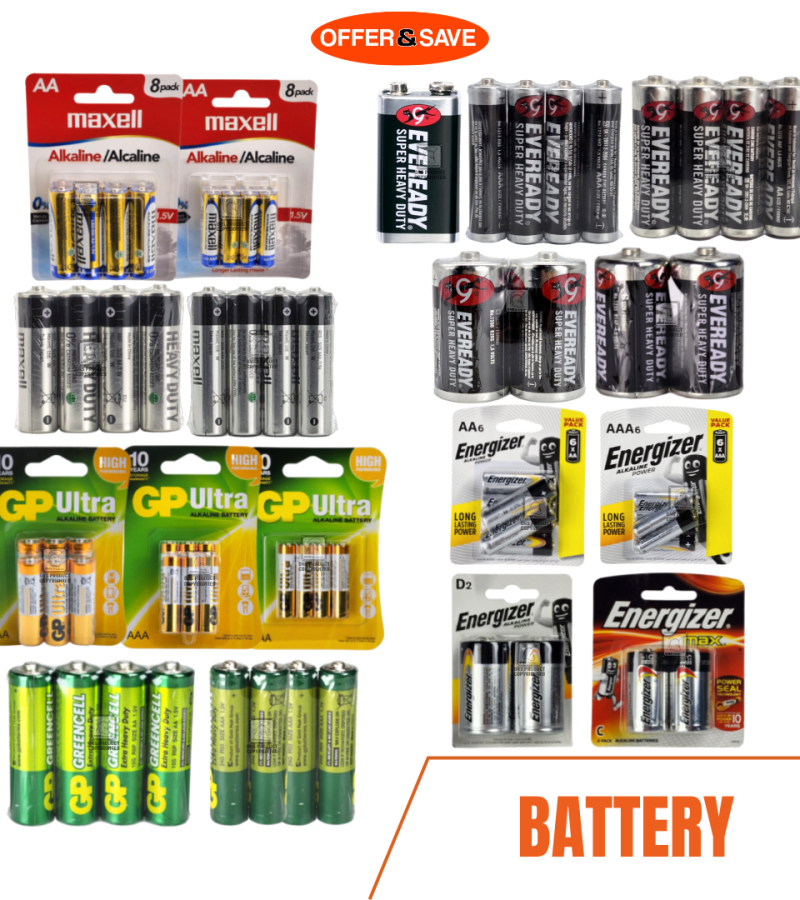 所有电池[Eveready/Maxell/GP/Energize]-AA/AAA/D尺寸/C尺寸电池