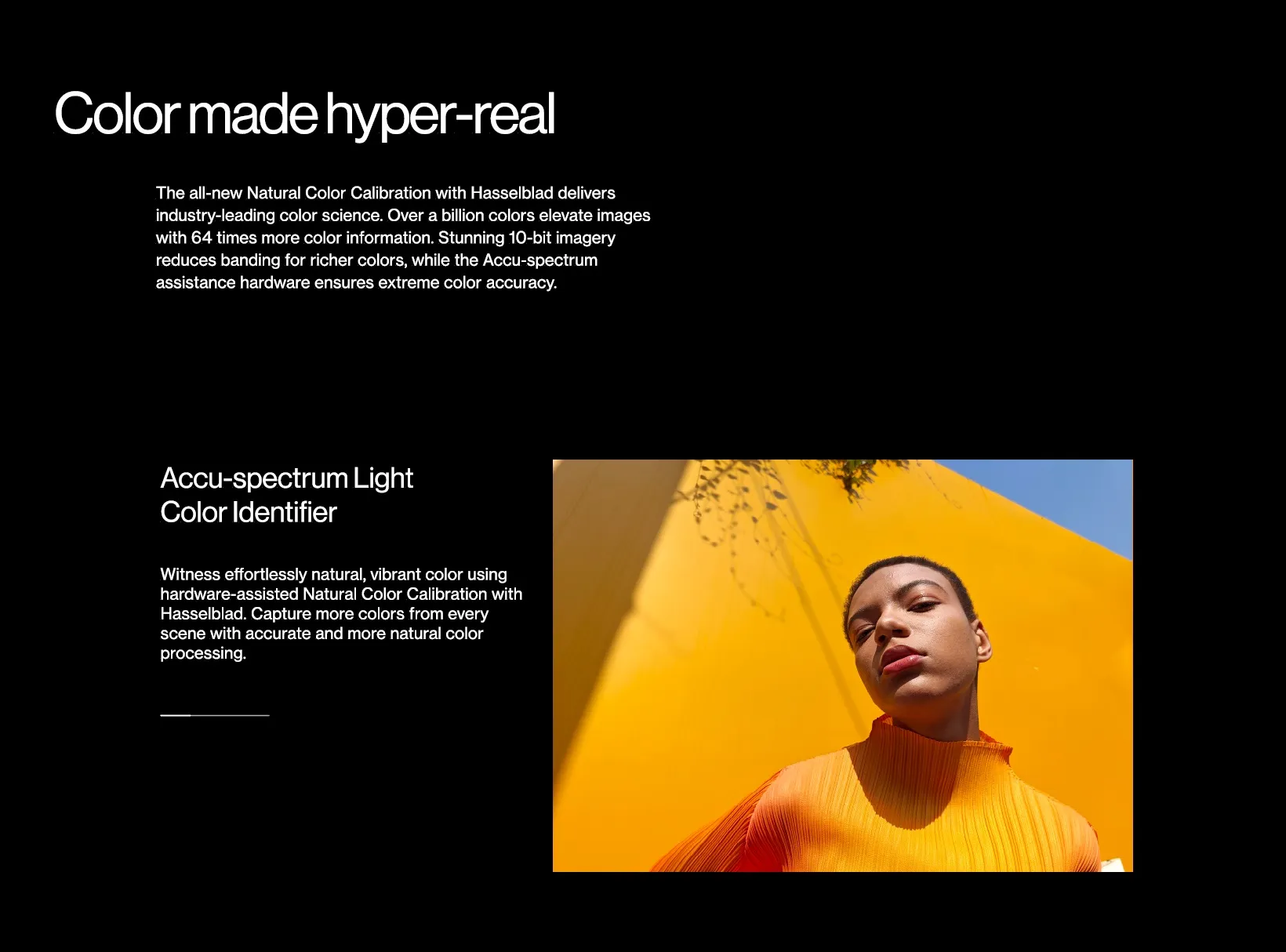 Main Camera: Hasselblad Color Calibration, Dual-LED flash, HDR, panorama