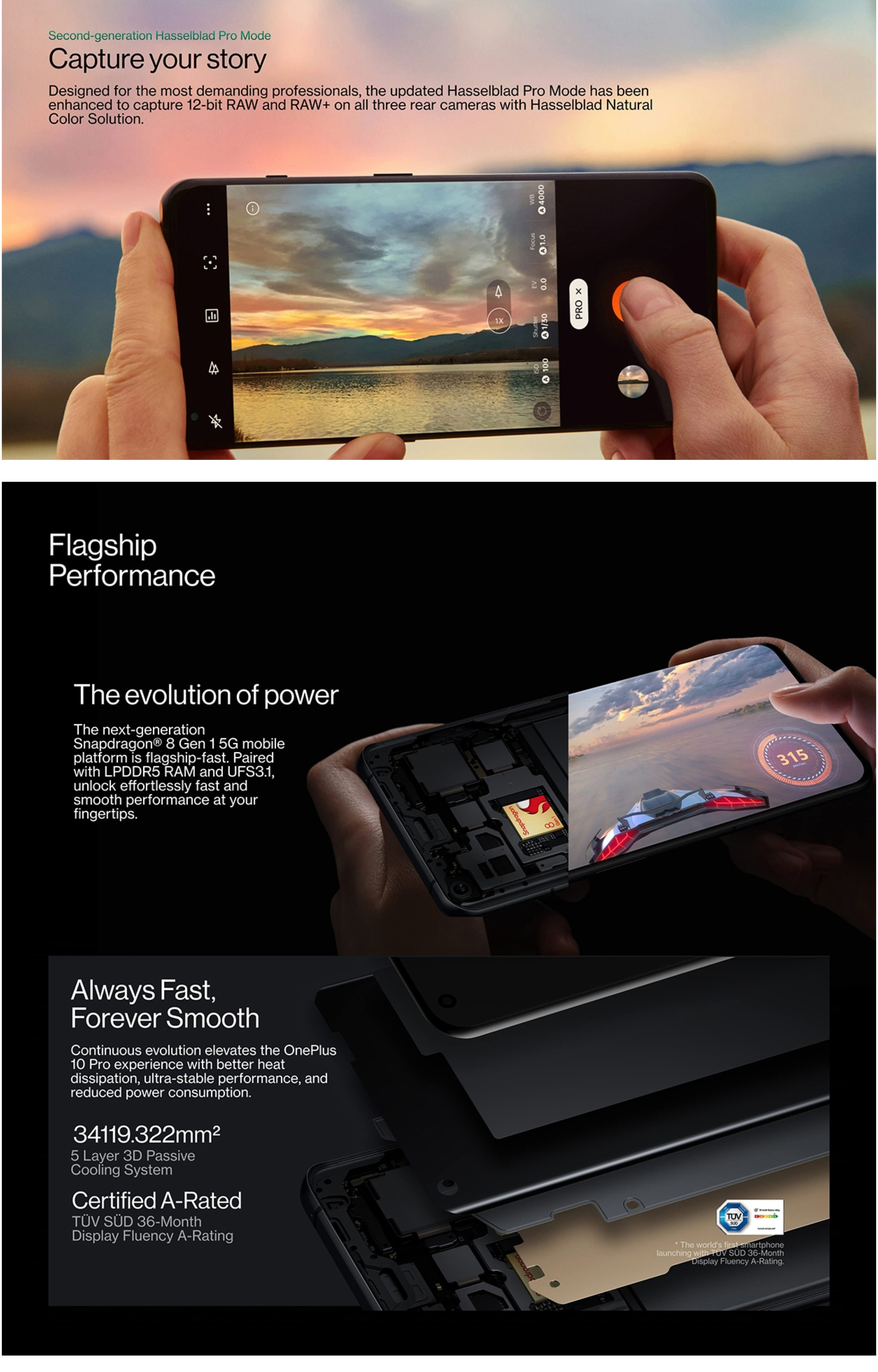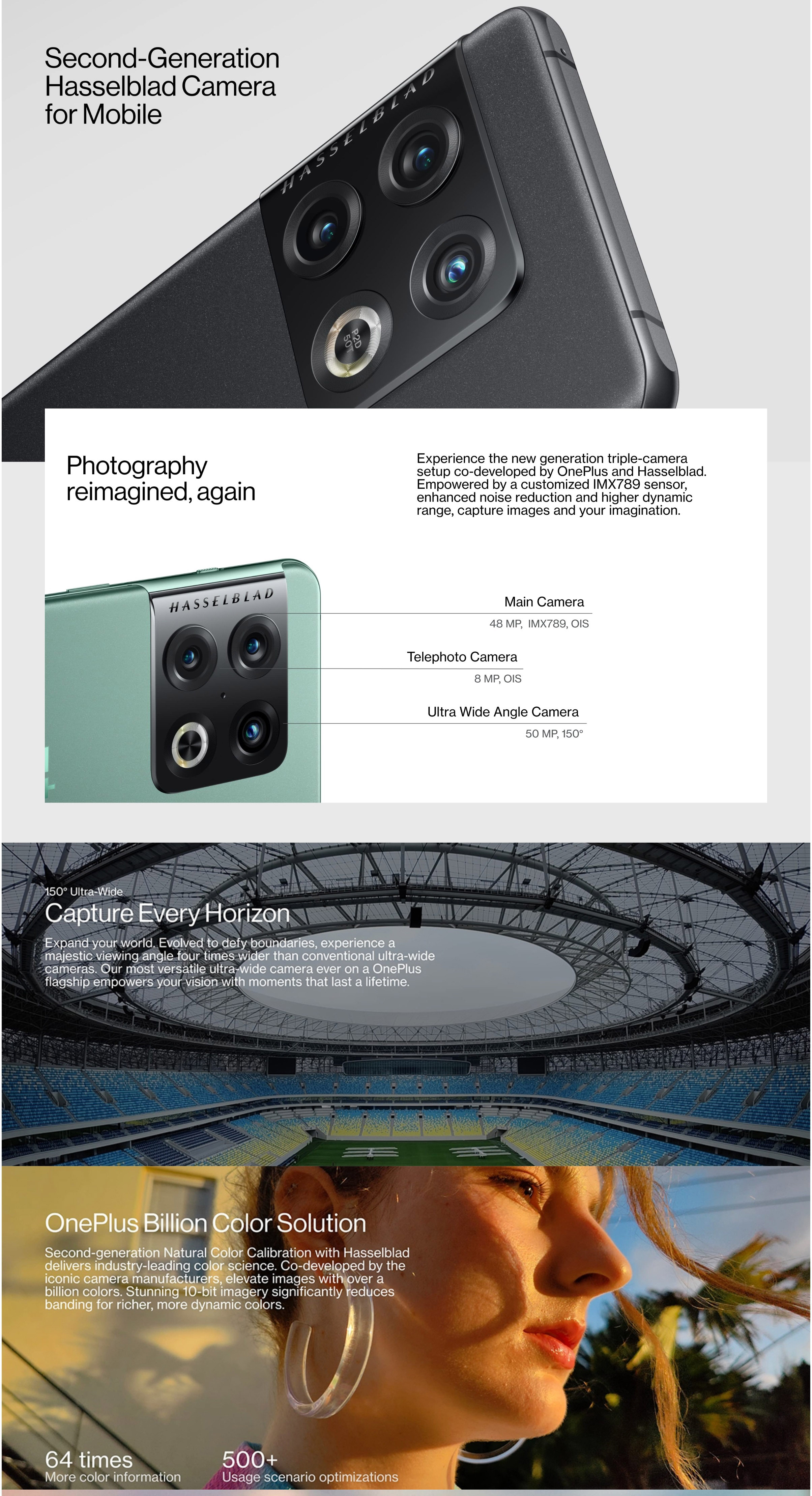The OnePlus 10 Pro boasts the second-generation Hasselblad Camera for Mobile, the fastest performance in any OnePlus smartphone to date, and a 120 Hz display with improved LTPO technology and Dual Color Calibration. In addition, the device totes an array of new gaming features made possible by the HyperBoost Gaming Engine and sports a brand-new design that continues OnePlus’ tradition of offering products that are burdenless and stylish.