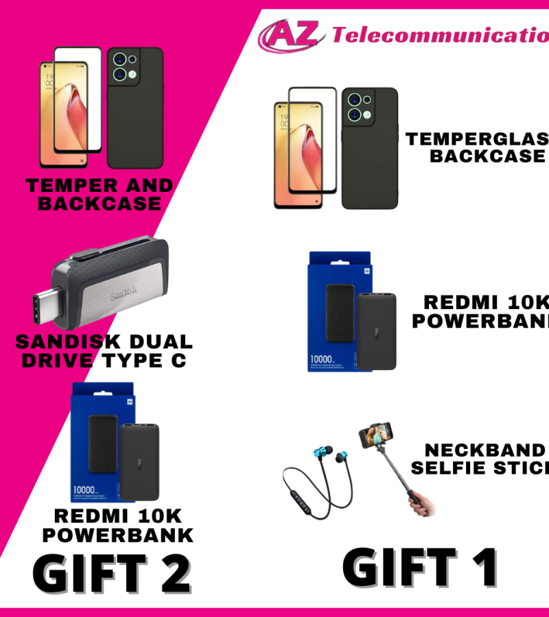 - FREE GIFT 1 : TEMPERGLASS, BACKCASE, WIRELESS NECKBAND, REDMI 10K POWERBANK, SELFIE STICK