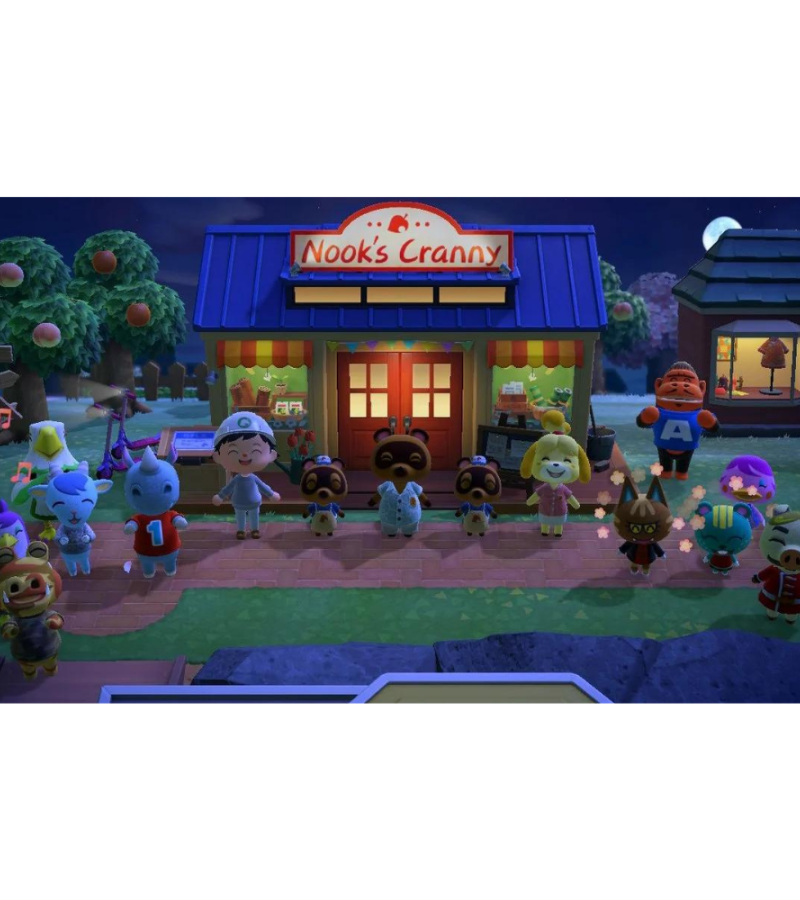 Escape to a deserted island and create your own paradise as you explore, create, and customize in the Animal Crossing: New Horizons game. Your island getaway has a wealth of natural resources that can be used to craft everything from tools to creature comforts. You can hunt down insects at the crack of dawn, decorate your paradise throughout the day, or enjoy sunset on the beach while fishing in the ocean. The time of day and season match real life, so each day on your island is a chance to check in and find new surprises all year round.Show off your island utopia to family and friends—or pack your bags and visit theirs. Whether playing online* or with others beside you**, island living is even better when you can share it. Even without hopping on a flight, you’ll meet a cast of charming animal residents bursting with personality. Friendly faces like Tom Nook and Isabelle will lend their services and happily help you grow your budding community. Escape to your island getaway—however, whenever, and wherever you want.