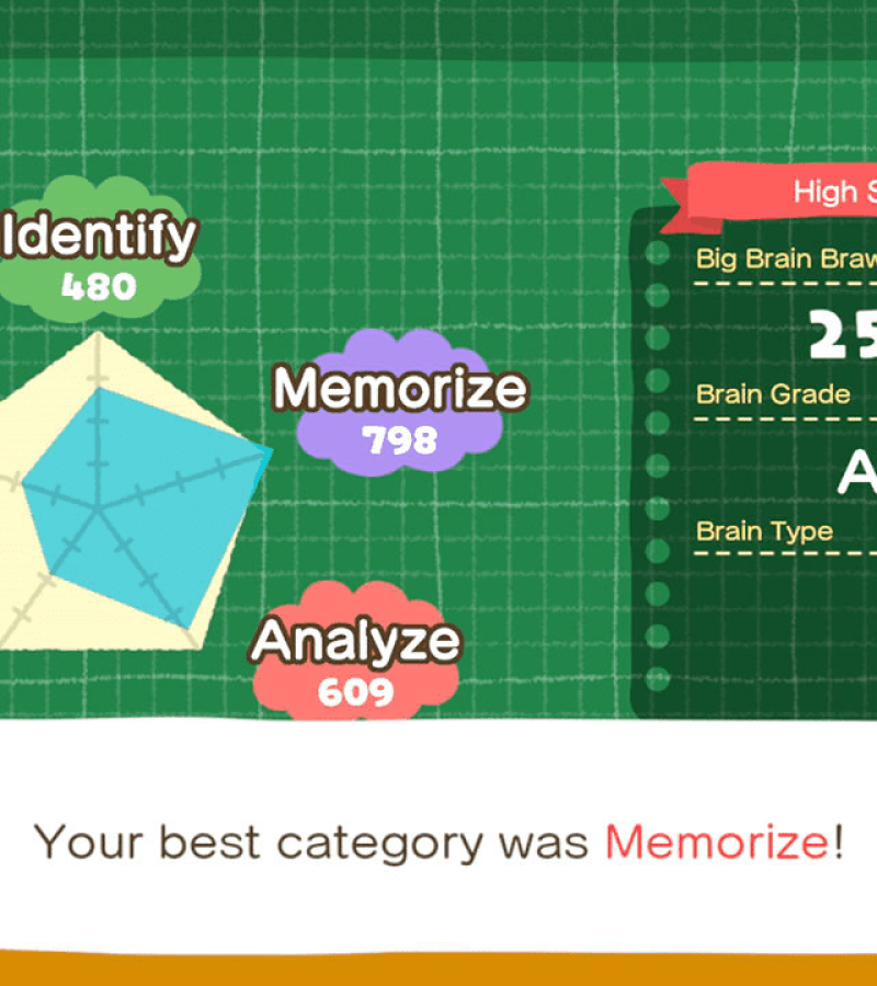 Get your own Big Brain Brawn score with a fun test. Boost your skill and speed by practicing certain activities. Of course, you can also prep for your next multiplayer brain battle or compare scores with friends and family. Unlock dozens of outfit options for your in-game avatar—from a cat outfit to a corn costume!