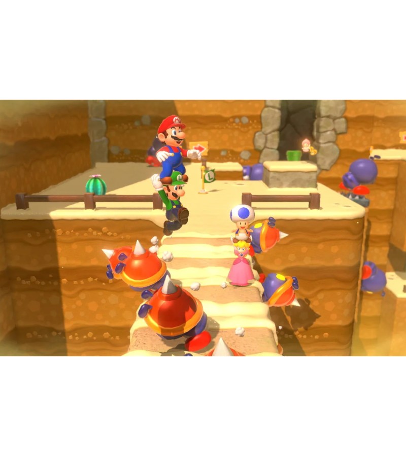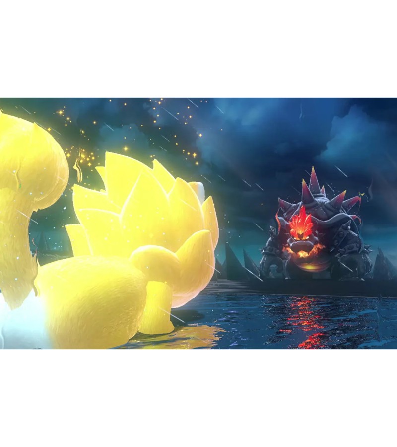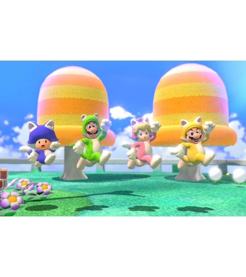 Pounce and climb through dozens of colorful courses! Mario (and his friends) can use a variety of power-ups like the Super Bell, which grants catlike abilities like climbing and scratching. Team up with up to three other players locally* to reach the goal and see who can get a high score. Explore a seamless feline world in the new Bowser’s Fury adventure Free-roaming Super Mario gameplay makes a return in this brand-new adventure. Bowser has become gargantuan and lost all control! Explore Lake Lapcat and its islands, complete objectives to collect Cat Shines, and team up with Bowser Jr. to bring his big, bad dad back to normal. Just watch out for Bowser’s island-wide attacks. New and improved features pounce in The Super Mario 3D World + Bowser’s Fury game features the same great co-op gameplay, creative levels and power-ups as the original game, but with added improvements. In the Super Mario 3D World part of the game, characters move faster and the dash powers up more quickly. Both adventures support the newly added Snapshot Mode—pause the action to get the perfect shot, apply filters, and decorate with stamps!