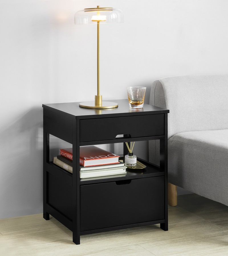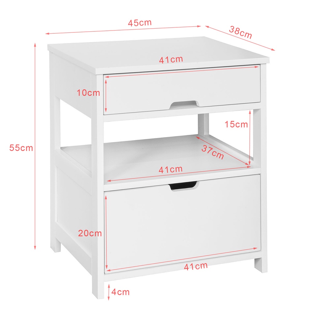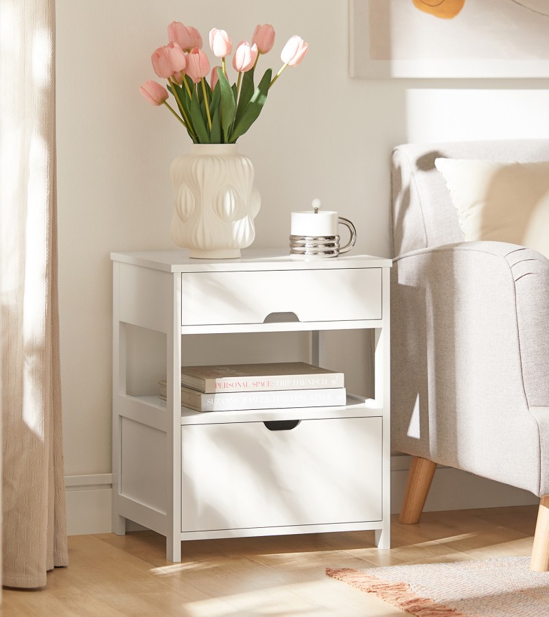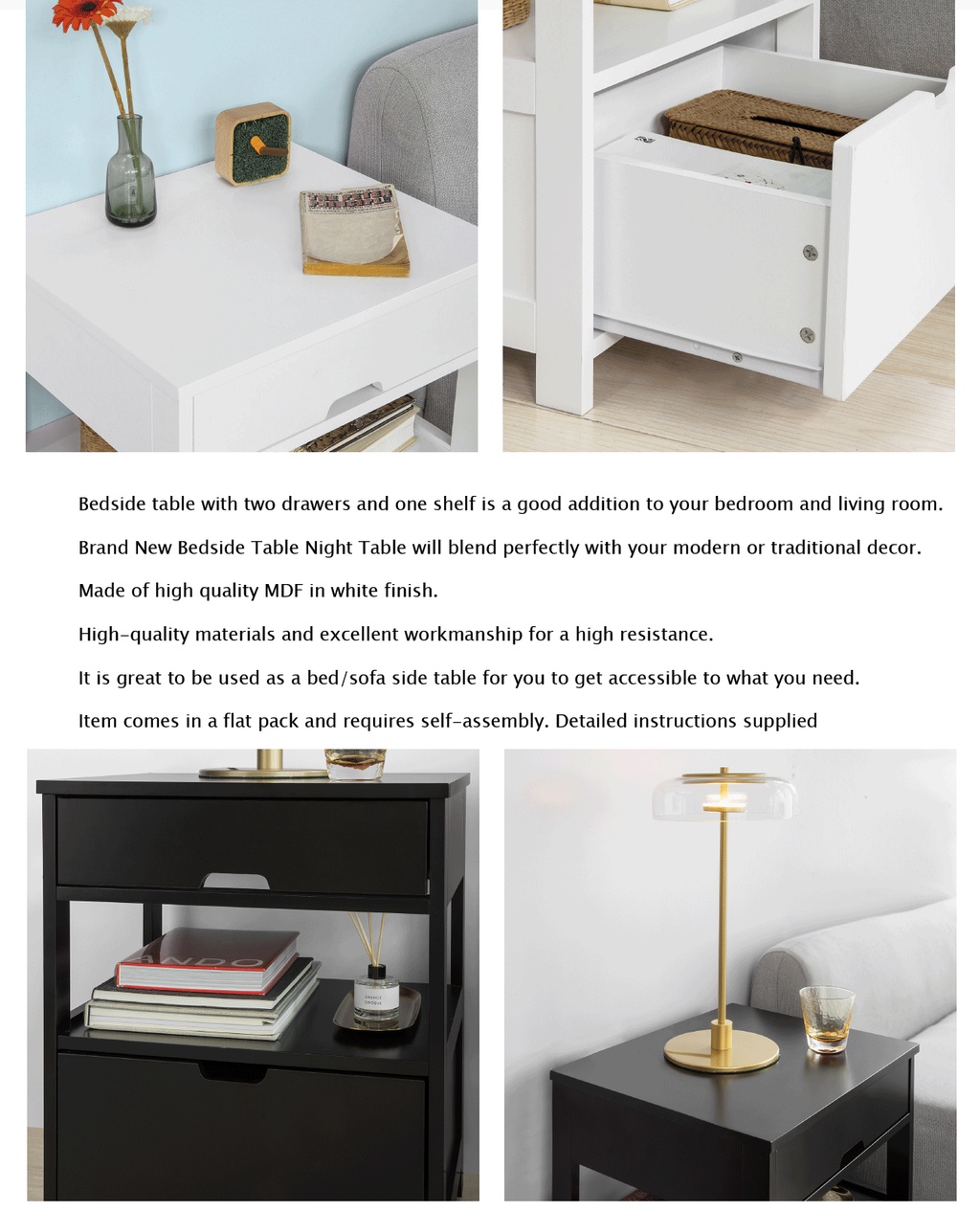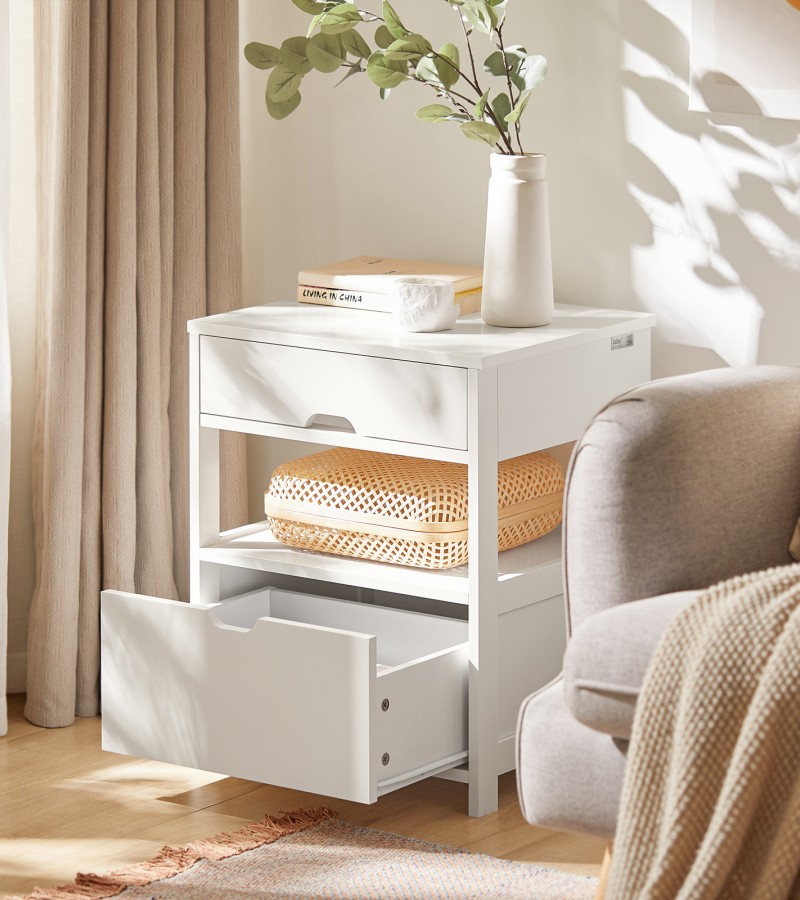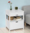 (SG STOCK)SoBuy®FRG258-W/SCH家用木边桌、边桌、带2个抽屉的茶几,白色、黑色