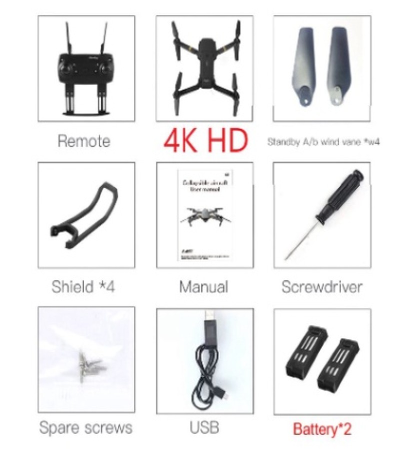 Function: Up/down, Forward/backward, Turn left/right, Sideward flight, 3-level flight speed, LED Light, Headless Mode, One Key Automatic Return, Altitude Hold Mode, WiFi FPV