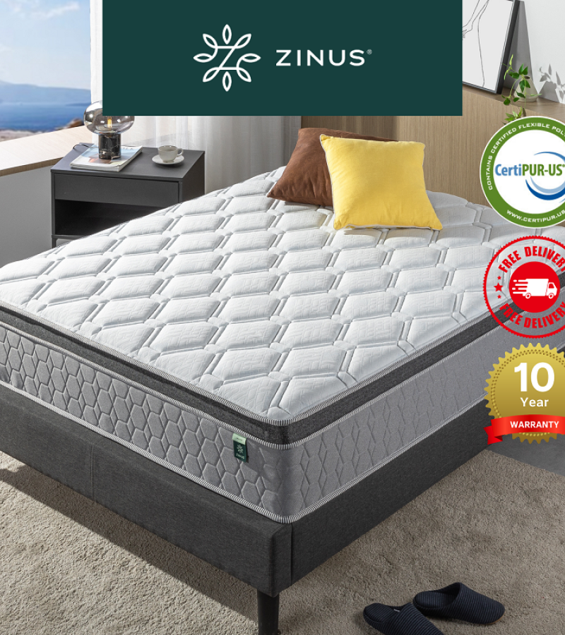 This 30cm Hybrid Mattress by Zinus features natural latex, memory foam and hundreds of independent pocketed springs. The 7.5” Pocketed Springs provides enough support, keeping your body aligned and luxuriously cushioned for a great night's sleep. With the natural latex layer, it provides your back with the best support and some study claims that it helps with relieving pain. The memory foam on the other hand, reduces pressure on spine, enveloping you with comfort through the night. This unique combination along with comforting latex and memory foam layers will help you sleep well, wake up refreshed and ready to face another day. Please open your mattress package within 72 hours of receipt and allow 48 hours for your new mattress to return to its original, plush shape. Another comfort innovation from Zinus. Pioneering comfort.
