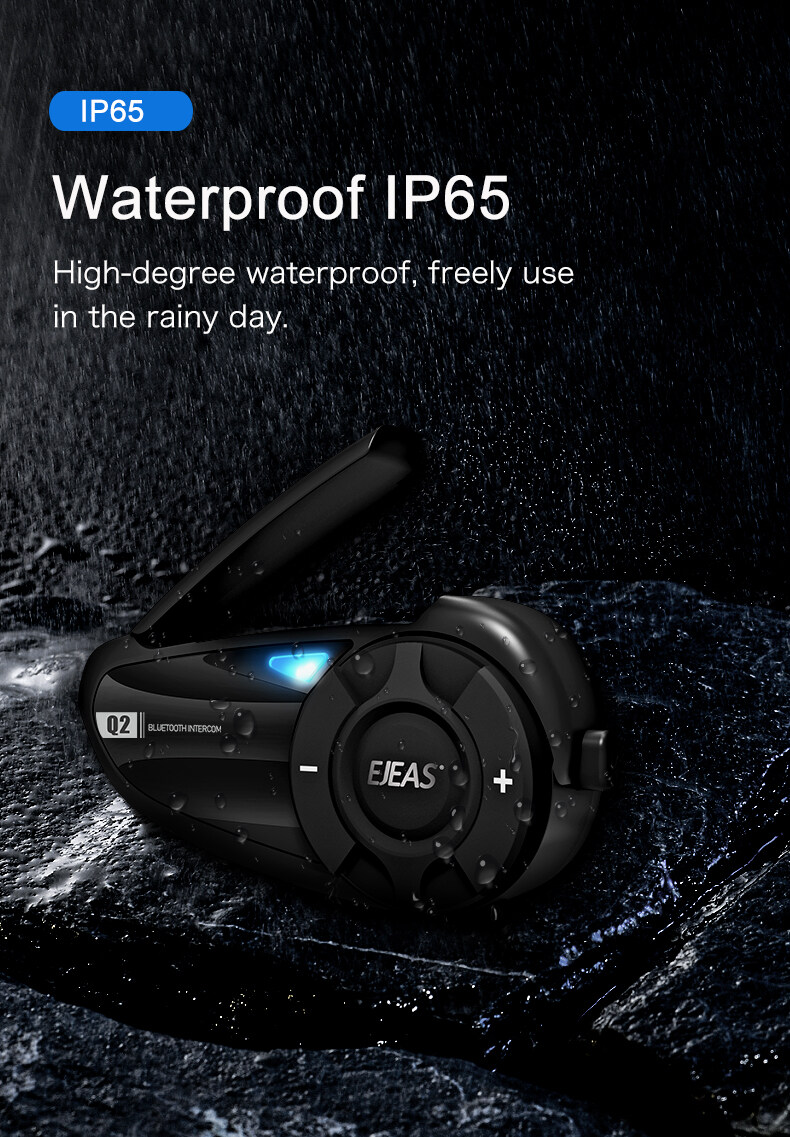 EJEAS Q2摩托车头盔蓝牙对讲耳机,2人实时通话,蓝牙5.1防水1件套